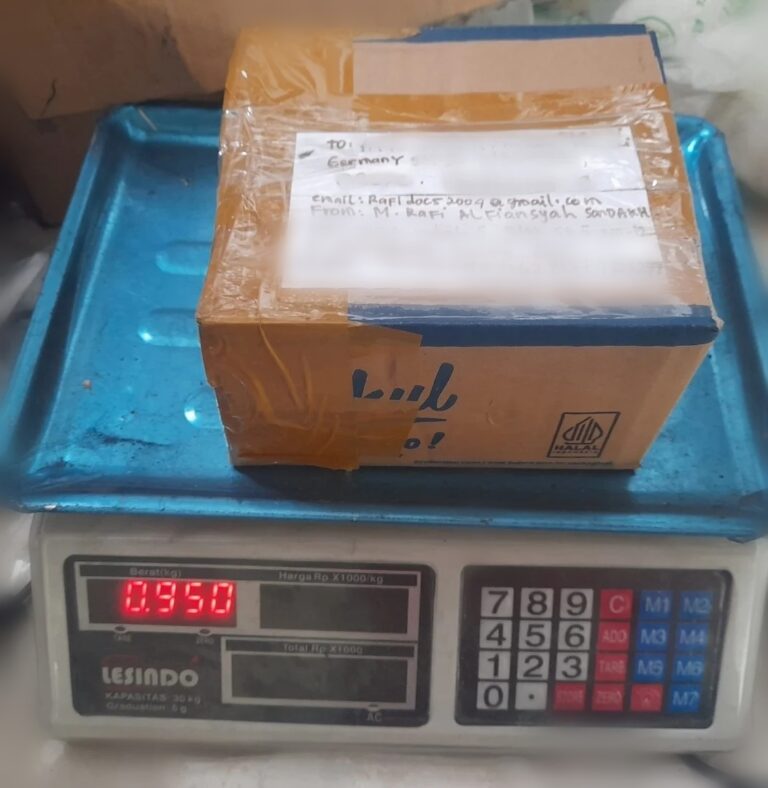 Pengirimnya dari M RAFI ALFIANSYAH SONDAKH, eksportir 19 tahun dengan nama panggilan Rafi Sondakh, dan dikirimkan ke salah satu perusahaan besar di Jerman dengan tujuan untuk observasi dan pengujian produk briket arang kelapa kami.